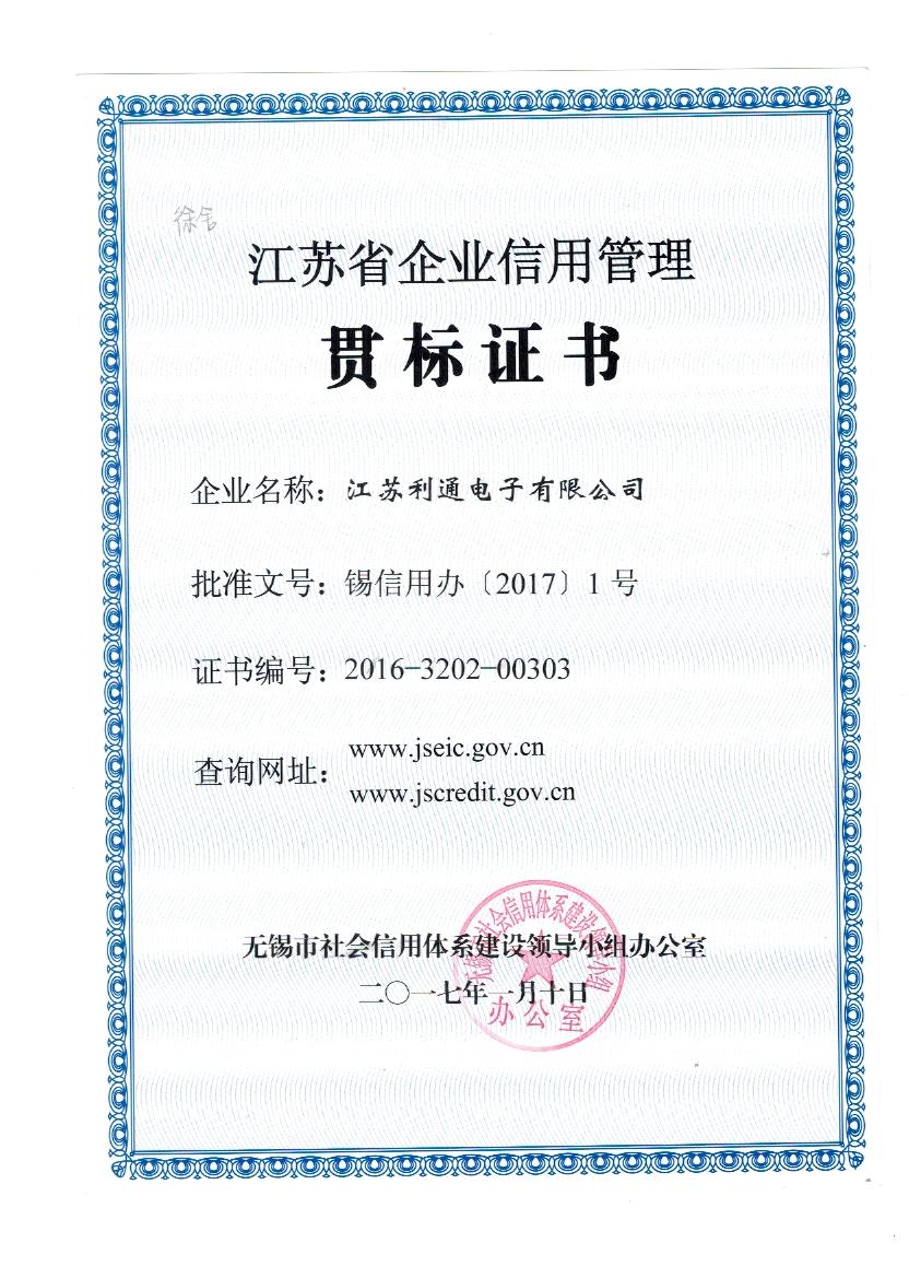 江苏省企业信用管理贯标证书<br /> <br />